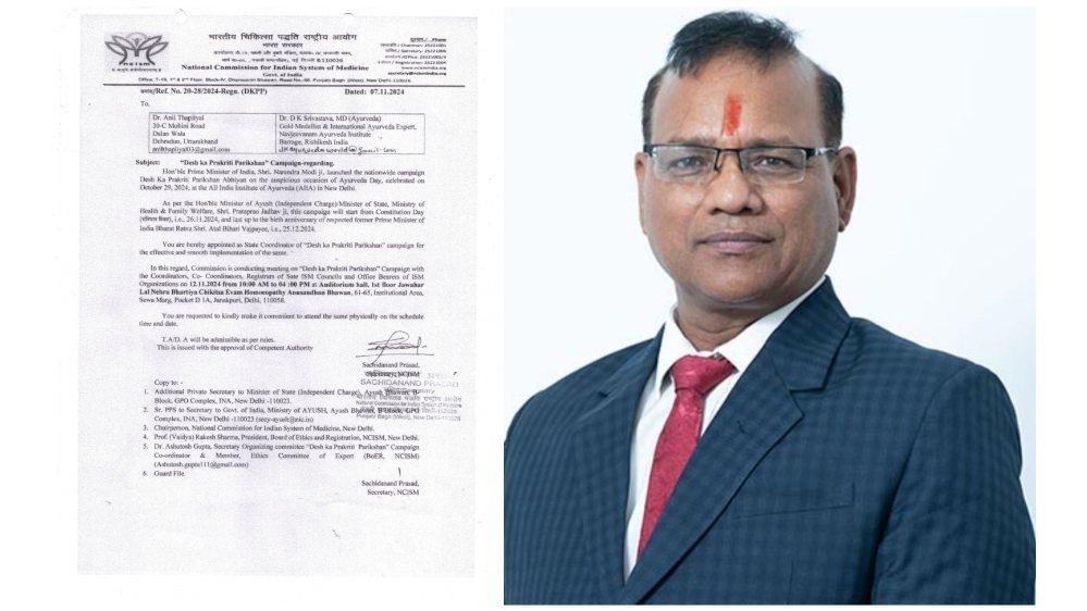 देहरादून। देश की पारंपरिक चिकित्सा को विश्व पटल पर नई पहचान दिलाने के लिए मुहिम गतिमान है। प्रधानमंत्री नरेन्द्र मोदी द्वारा देश की प्रकृति परीक्षण अभियान कैंपेन को देश भर में प्रचारित प्रसारित किया जा रहा है। इस क्रम में देश के विभिन्न राज्यों में ‘देश का प्राकृतिक परीक्षण अभियान’ के तहत कोर्डिनेटरों की नियुक्ति की गई है। उत्तराखण्ड से डाॅ अनिल थपलियाल को इस मुहिम का राज्य समन्वयक बनाया गया है। भारतीय चिकित्सा पद्धति राष्ट्रीय आयोग (भारत सरकार) के द्वारा डाॅ अनिल थपलियाल को प्राकृतिक परीक्षण अभियान का स्टेट कोओर्डिनेटर चुना गया है। श्री गुरु राम राय विश्वविद्यालय के प्रेसीडेंट श्रीमहंत देवन्द्र दास जी महाराज, विश्वविद्यालय के कुलपति, प्रति-कुलपति, कुलसचिव एवं स्कूल ऑफ योगिक साइंस एण्ड नैचुरोपैथी के डीन डाॅ कंचन जोशी ने डाॅ अनिल थपलियाल को बधाई दी।